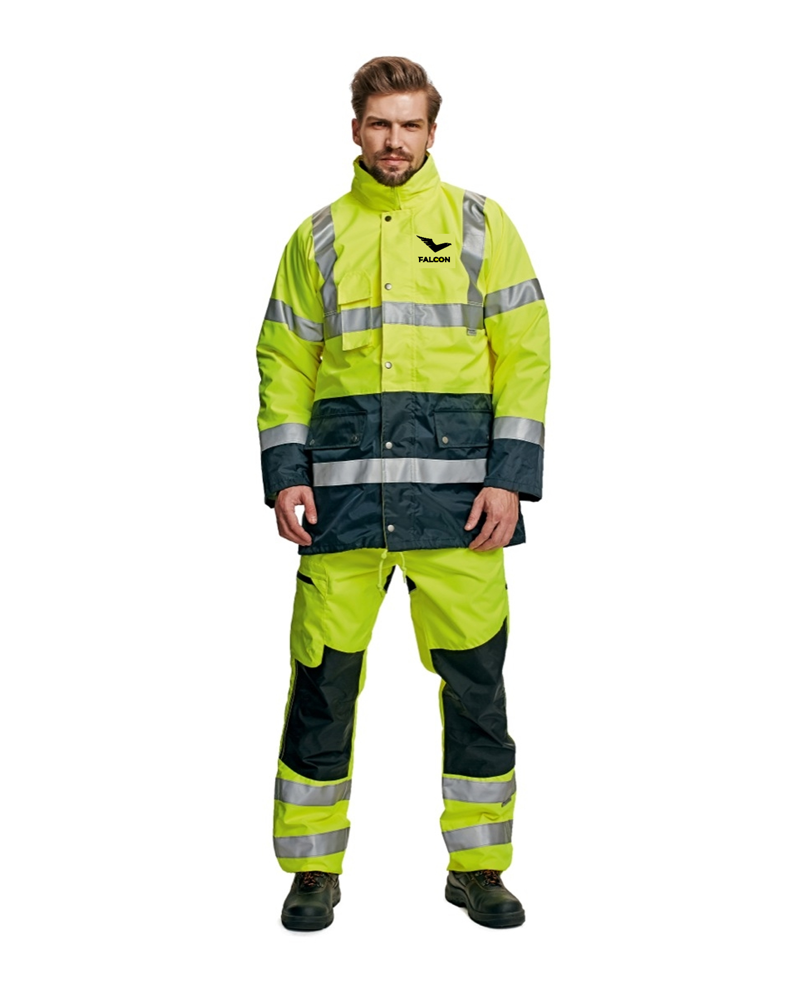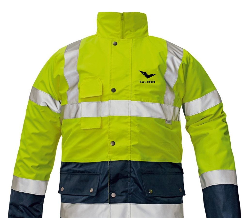 BI ROAD HV bunda pánská - žlutá/námořní modrá - potisk Falcon (černá)